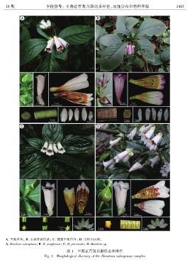 10 期 李佳慧等: 半蒴苣苔复合群的多样性、地理分布和物种界限 1 4 8 3 A. 半蒴苣苔ꎻ B. 永福半蒴苣苔ꎻ C. 翅茎半蒴苣苔ꎻ D. 金钟山居群ꎮ A. Hemiboea subcapitataꎻ B. H. yongfuensisꎻ C. H. pterocaulisꎻ D. Hemiboea sp. 图 1 半蒴苣苔复合群形态多样性 Fig. 1 Morphological diversity of the Hemiboea subcapitata complex