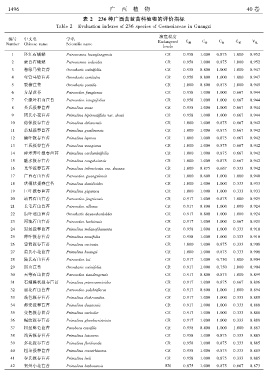 Table 2 Evaluation indexes of 236 species of Gesneriaceae in Guangxi