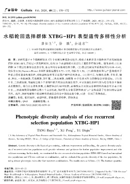 TANG RYꎬ XU Pꎬ YU DQ. Phenotypic diversity analysis of rice recurrent selection population XTBG ̄HP1 [ J]. Guihaiaꎬ 2020ꎬ 40(2):