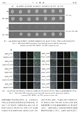 在酵母细胞中均有强相互作用ꎮ 进一步采用双分 nYFP 和 TTG1 ̄nYFPꎮ 当 ABI5 ̄cYFP 与 MYB75 ̄nY ̄