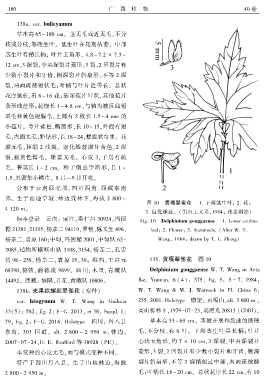 图 10 贡嘎翠雀花 1. 下部茎生叶ꎻ 2. 花ꎻ