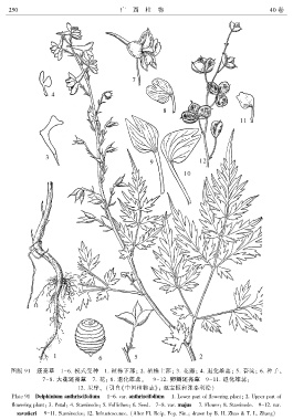Plate 91 Delphinium anthriscifolium 1-6. var. anthriscifolium 1. Lower part of flowering plantꎻ 2. Upper part of