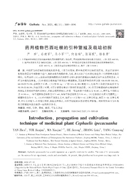 严珍ᖔ 岳建军ᖔ 马小军ᖔ 等 药用植物巴西吐根的引种繁殖及栽培初探 ЏȮ 广西植物ᖔ ԡϟᖔ ࿗ϟྉϟϟɯ᧥ ϟऐऐँͱϟऐँᤃ