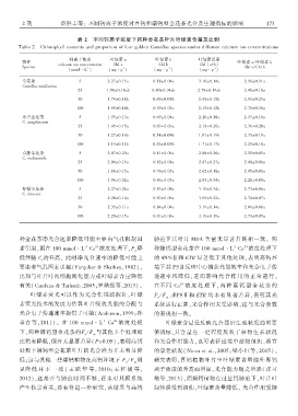 表 ԣই 不同钙离子浓度下四种金花茶叶片叶绿素含量及比例