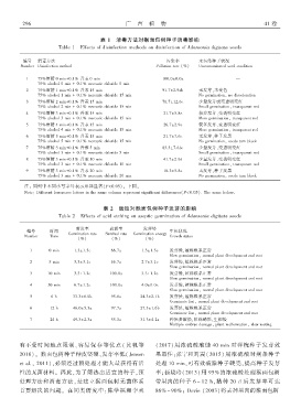 表 ϓই 消毒方法对猴面包树种子消毒影响