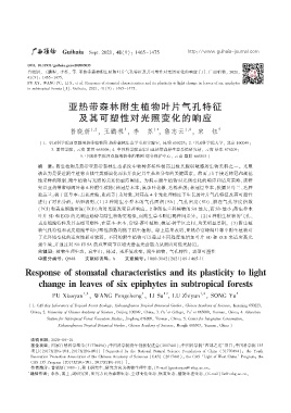 普晓妍ᖔ 王鹏程ᖔ 李苏ᖔ 等 亚热带森林附生植物叶片气孔特征及其可塑性对光照变化的响应 ЏȮ 广西植物ᖔԡϟᖔ
