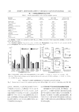 组ଫ距药姜的叶片 ጶऊ᧕ 与 ۪ዶ 呈微弱正相关ᖔ在 ࿗ 和树干区附生植物之间ᖔ相关参数的表型可塑性