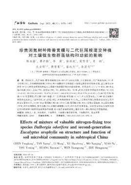 陈永康ᖔ 谭许脉ᖔ 李萌ᖔ 等 珍贵固氮树种降香黄檀与二代巨尾桉混交种植对土壤微生物群落结构和功能的影响 ЏȮ