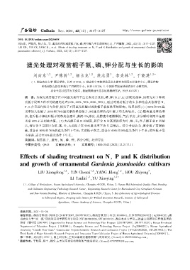 关键词: 观赏栀子ꎬ 遮光ꎬ 氮、 磷、 钾ꎬ 养分分配ꎬ 处理方法