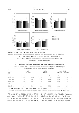 表 2 不同光质及光周期下香子含笑幼苗生物量分配和质量指数的双因素方差分析