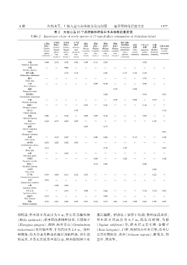 表 ԣই 大金山岛 ϓᇺ 个典型植物群落中木本植物的重要值