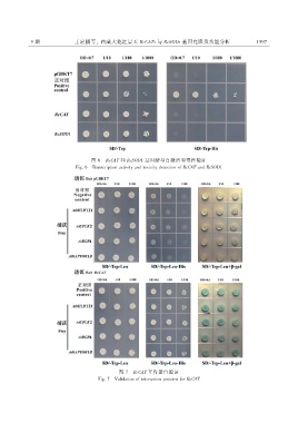 ँ 期 王 宏 鹏 等 ᧥ 西藏大花红景天 ቴዞࣷዛ௴ 与 ቴዞ᧣ᦵ 基因克隆及功能分析 ϟ ጢ ँ Ꭾ 图 ᤃজ ቴዞࣷዛ௴ 和 ቴዞ᧣ᦵϟ 基因酵母自激活和毒性验证 èᔽ੫ ᤃজ ఋʢᑕႿ༁ዹʢᔽᡱᡷᔽᆍႿ ᑕዹᡷᔽᔽᡷᢃ ᑕႿʛ ᡷᆍᔽዹᔽᡷᢃ ʛᔀᡷᔀዹᡷᔽᆍႿ ᆍ ቴዞࣷዛ௴ ᑕႿʛ ቴዞ᧣ᦵϟ 图 Ꭾজ ቴዞࣷዛ௴ 互作蛋白验证 èᔽ੫ Ꭾজ ᑕᔽʛᑕᡷᔽᆍႿ ᆍ ᔽႿᡷᔀʢᑕዹᡷᔽᆍႿ ᡱʢᆍᡷᔀᔽႿ༁ ᆍʢ ቴዞࣷዛ௴