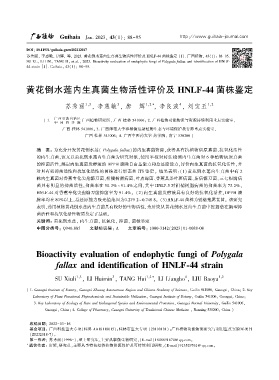 苏秀丽ꎬ 李惠敏ꎬ 唐辉ꎬ 等ꎬ 2023. 黄花倒水莲内生真菌生物活性评价及 HNLF ̄44 菌株鉴定 [J]. 广西植物ꎬ 43(1): 88-95.