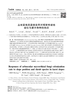 陈美凤ꎬ 王忠诚ꎬ 蒋南南ꎬ 等ꎬ 2023. 丛枝菌根真菌侵染率对喀斯特坡地坡位与灌木物种的响应 [J]. 广西植物ꎬ 43(3):