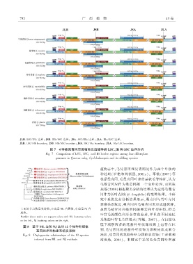 上面的节点数是支持值ᖔ左边是 ᥘᓂ 自展值ᖔ右边是 શȮ 自 虽然毛曼青冈和曼青冈的果实和叶型相似ᖔ但是