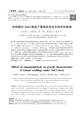 关键词: 番茄ꎬ 肉桂醛ꎬ NaCl 胁迫ꎬ 生长特性ꎬ 耐盐性