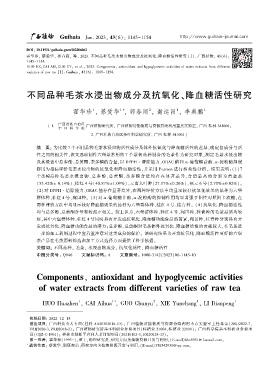 摘 要: 为比较 7 个不同品种毛茶水浸出物活性成分及体外抗氧化与降血糖活性的差异ꎬ确定各成分与活