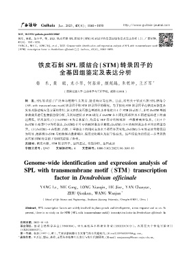 杨乐ꎬ 聂聪ꎬ 龙小琴ꎬ 等ꎬ 2023. 铁皮石斛 SPL 膜结合(STM) 转录因子的全基因组鉴定及表达分析 [J]. 广西植物ꎬ