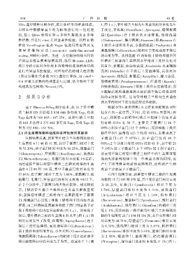 生真菌有 6 门 46 科 51 属ꎬ其中子囊菌门相对丰度 OTUsꎻ2 个分组共有的 OTUs 仅有 61 个ꎬ其中有 21