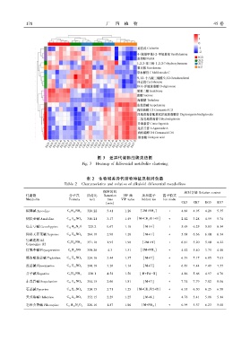 表 2 生物碱差异代谢物特征及相对含量