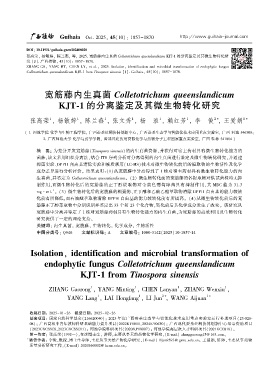 张高荣ꎬ 杨敏婷ꎬ 陈兰燕ꎬ 等ꎬ 2025. 宽筋藤内生真菌 Colletotrichum queenslandicum KJT ̄1 的分离鉴定及其微生物转化研
