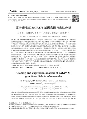 DU MYꎬ MA JZꎬ DUO JCꎬ et al.ꎬ 2025. Cloning and expression analysis of SaGPAT1 gene from Salsola abrotanoides [ J].