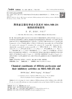 张倩ꎬ 苗莹莹ꎬ 许秋月ꎬ 2025. 厚果崖豆藤化学成分及其对 MDA ̄MB ̄231 细胞的抑制活性 [J]. 广西植物ꎬ 45(10):