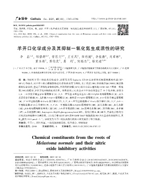 据的综合分析ꎬ鉴定了所得化合物的结构ꎬ并利用脂多糖(LPS) 诱导小鼠巨噬细胞 RAW 264.7 释放一氧化