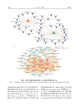 Fig. 4 Correlation network of co ̄occurring (A) and correlation network analysis (B) of rhizosphere soil bacteria