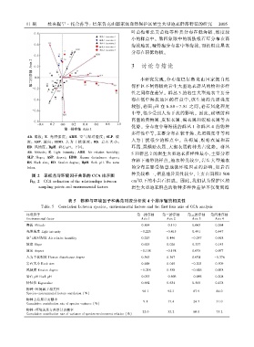 Table 5 Correlation between speciesꎬ environmental factors and the first four axis of CCA analysis