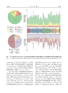 图 1 77 个新组装的 Malvatheca 分支物种质体全基因组中的简单重复序列、散在重复序列的各类数量及比例