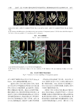 Aꎬ B. Variations of the morphology of pinnae in the same populationꎻ C - E. Variations of the apex morphology of pinnae in the same