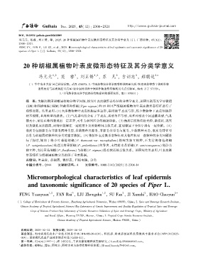 冯元元ꎬ 范睿ꎬ 刘正铸ꎬ 等ꎬ 2025. 20 种胡椒属植物叶表皮微形态特征及其分类学意义 [ J] . 广西植物ꎬ 45(12) :