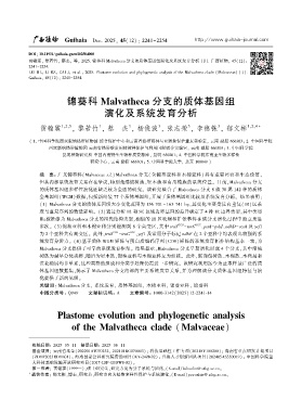 雷翰霖ꎬ 黎若竹ꎬ 蔡杰ꎬ 等ꎬ 2025. 锦葵科 Malvatheca 分支的质体基因组演化及系统发育分析 [J]. 广西植物ꎬ 45(12):