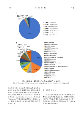 图 3 腐烂块茎中真菌群落在门水平(A)和属水平(B)的分布