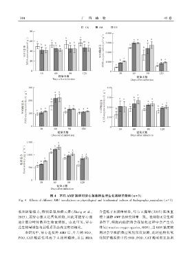 本研究中ꎬ穿心莲接种 AMF 后ꎬ叶片的 SOD、 高时会导致脂质过氧化反应加剧ꎬ此时植物抗氧