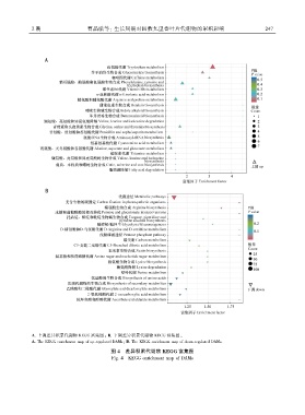 2 期 曹晶潇等: 生长周期对四数九里香叶片代谢物的累积影响 2 4 7 A. 上调差异积累代谢物 KEGG 富集图ꎻ B. 下调差异积累代谢物 KEGG 富集图ꎮ A. The KEGG enrichment map of up ̄regulated DAMsꎻ B. The KEGG enrichment map of down ̄regulated DAMs. 图 4 差异积累代谢物 KEGG 富集图 Fig. 4 KEGG enrichment map of DAMs