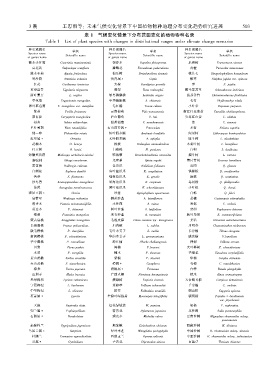 表 1 气候变化情景下分布范围变化的植物物种名录