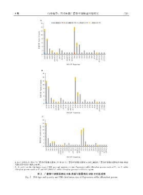 A、B、C 分别为 P1 等 9 个广藿香叶绿体基因组、P7 等 10 个广藿香叶绿体基因组与 GSY_MLXY 广藿香叶绿体基因组的 SSR 类型