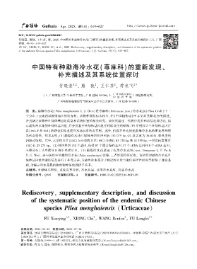 付晓莹ꎬ 熊驰ꎬ 王仁芬ꎬ 等ꎬ 2025. 中国特有种勐海冷水花(荨麻科)的重新发现、补充描述及其系统位置探讨 [J]. 广西