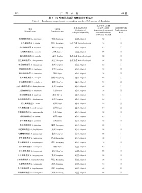 Table 3 Landscape comprehensive evaluation results of 52 species of Aspidistra