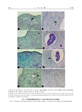 Dꎬ Fꎬ H. Cross section of ovary end of carpelsꎬ arrows show the special parenchymatous cells. Aꎬ Dꎬ Eꎬ Fꎬ G. Scale bars= 200 μmꎻ B. Scale