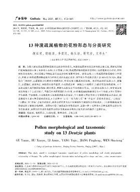 顾亚男ꎬ 胡晓雨ꎬ 李爱民ꎬ 等ꎬ 2025. 13 种溲疏属植物的花粉形态与分类研究 [J]. 广西植物ꎬ 45(5): 872-885.
