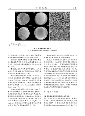 极面观轮廓为椭圆形ꎬ远极沟具纹饰膜ꎬ远极沟长 3 讨论与结论