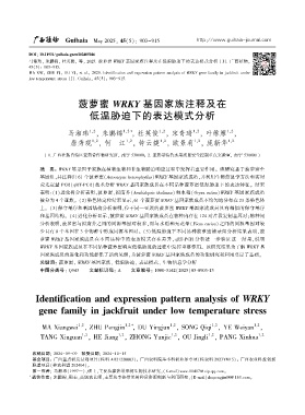 关键词: 菠萝蜜ꎬ WRKY 基因家族ꎬ 低温胁迫ꎬ 表达模式ꎬ 生物信息学分析
