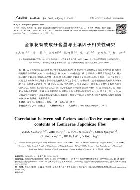 王高红ꎬ 朱蒙ꎬ 张文硕ꎬ 等ꎬ 2025. 金银花有效成分含量与土壤因子相关性研究 [J]. 广西植物ꎬ 45(6): 1110-1121.