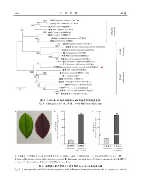 图 5 白花檵木和红花檵木叶片表型及 LcMYB113 相对表达量