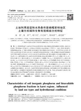 关键词: 喀斯特生态系统ꎬ 土地利用类型ꎬ 水热条件ꎬ 无机磷组分ꎬ 生物有效磷