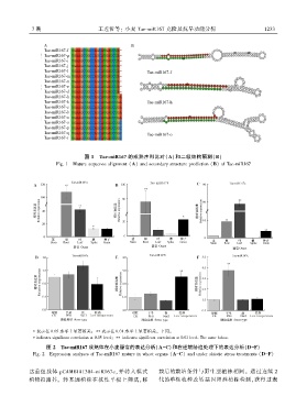 图 2 Tae ̄miR167 成熟体在小麦器官的表达分析(A-C)和在逆境胁迫处理下的表达分析(D-F)
