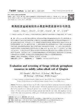 饲草产量高种质ꎮ 该研究综合分析了青海轻度盐碱地种植的小黑麦种质资源农艺性状ꎬ筛选出适合在该地